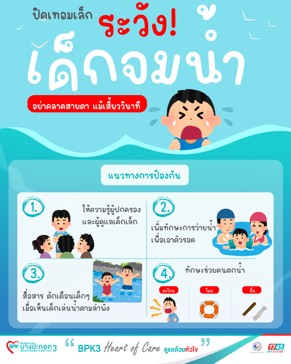 - อย่าเก็บสิ่งของที่ตกไปในน้ำด้วยตนเอง ต้องให้ผู้ใหญ่ช่วยเก็บ