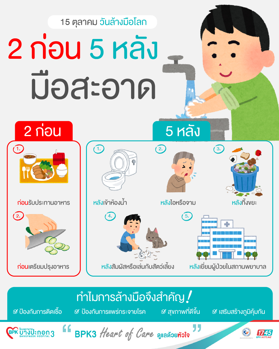 2 ก่อน ได้แก่ ก่อนรับประทานอาหาร และก่อนเตรียมปรุงอาหาร