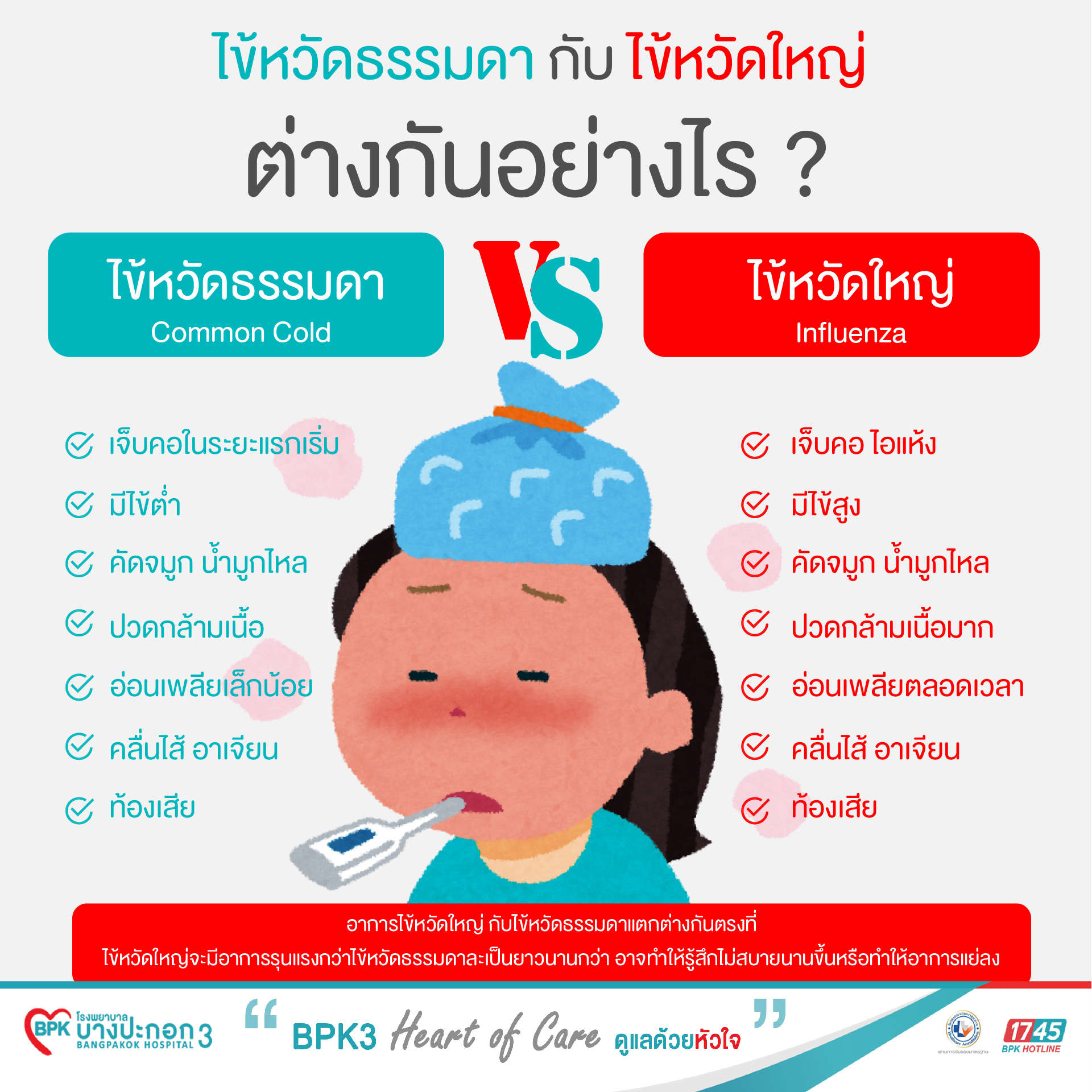 การติดเชื้อไข้หวัดเป็นสิ่งที่เราคุ้นเคยในชีวิตประจำวัน แต่มีสองประเภทที่แตกต่างกันอย่างชัดเจน คือ ไข้หวัดใหญ่ (Influenza) และ ไข้หวัดธรรมดา (Common Cold) ซึ่งมีความแตกต่างทั้งในอาการที่แสดง และความรุนแรงของโรค ซึ่งความแตกต่างระหว่างทั้งสองโรคนี้มีดังนี้