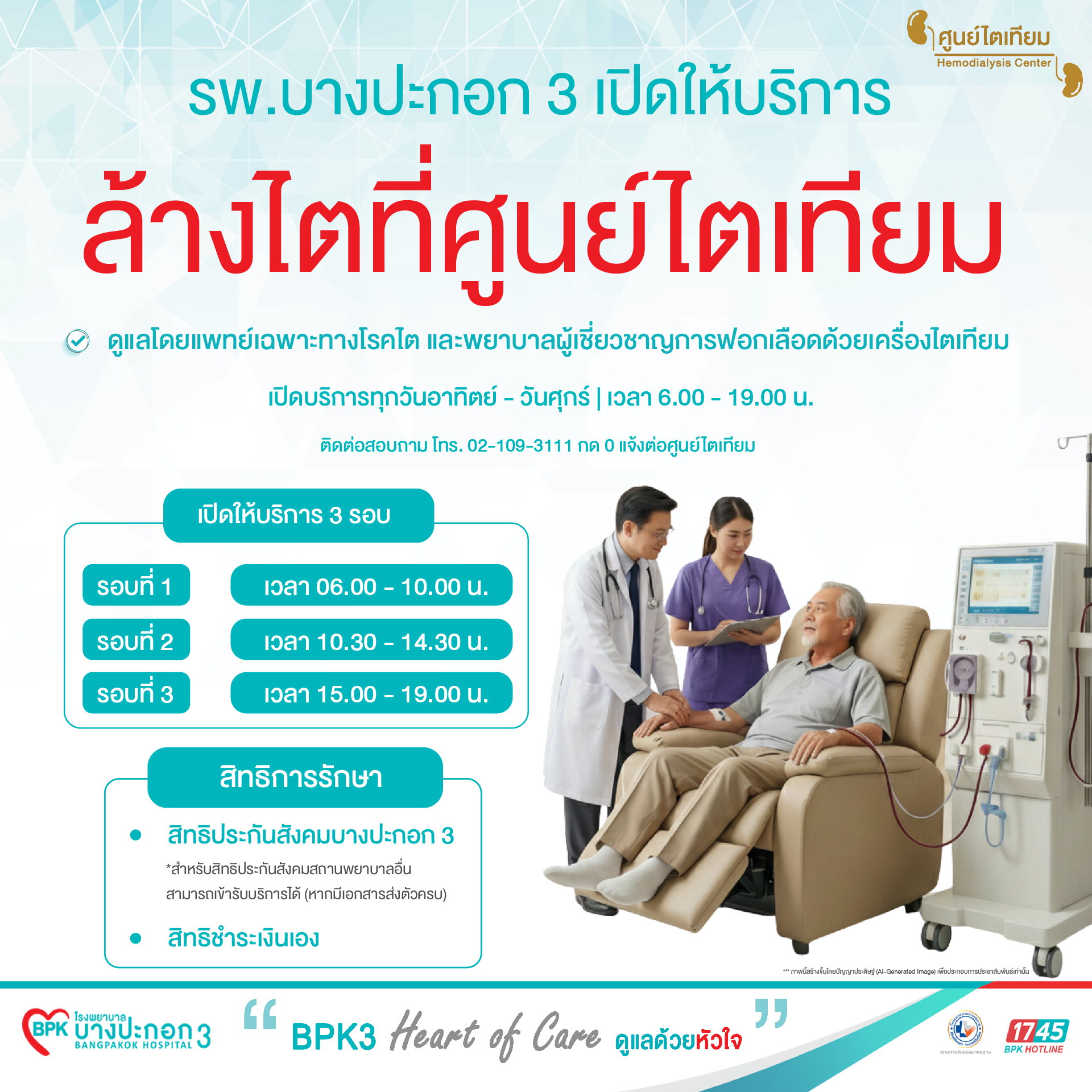 ศูนย์ไตเทียม โรงพยาบาลบางปะกอก 3 พร้อมให้บริการแล้ววันนี้!
