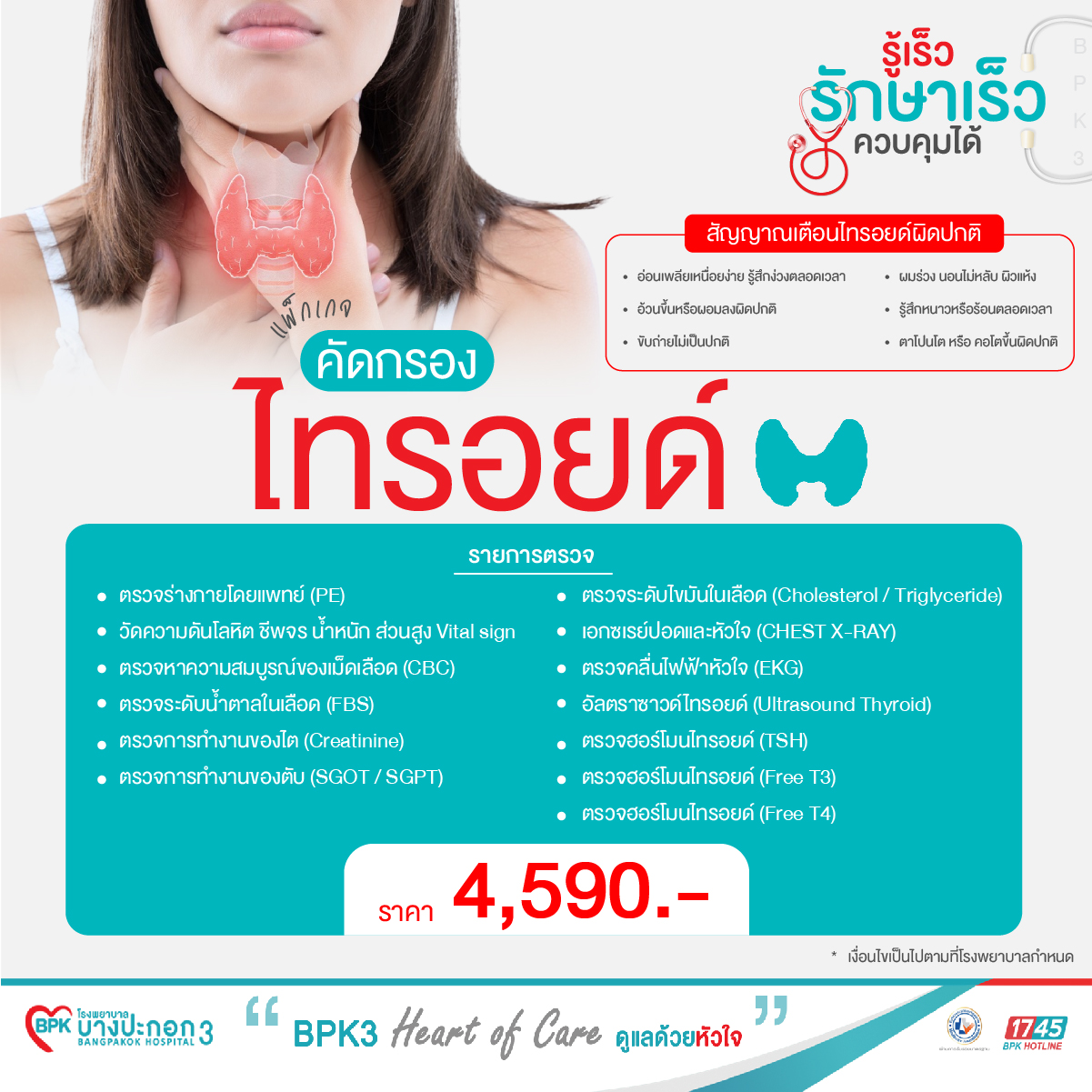 รายการตรวจสุขภาพไทรอยด์ในราคา 4,590 บาท