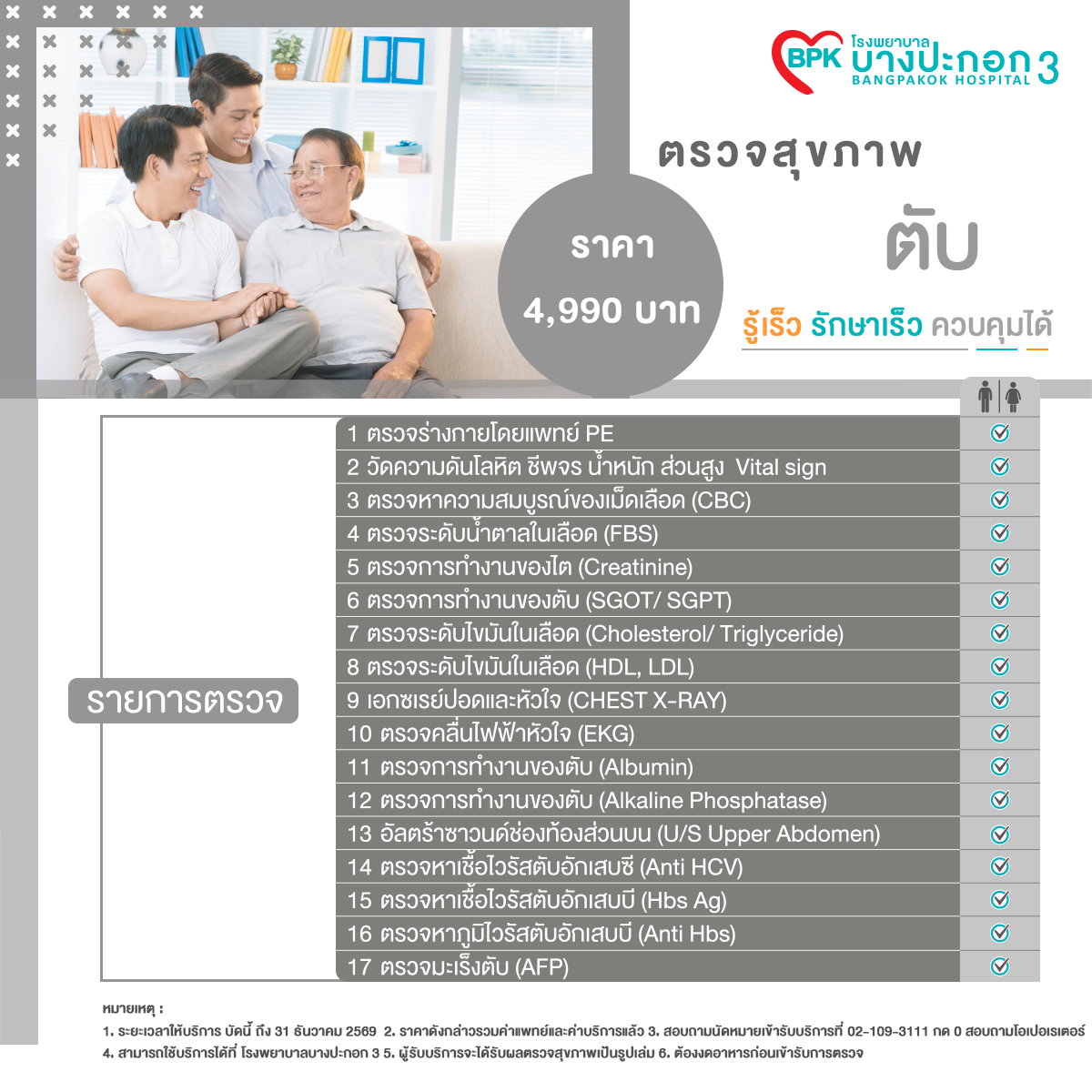 รายการตรวจสุขภาพตับในราคา 4,990 บาท