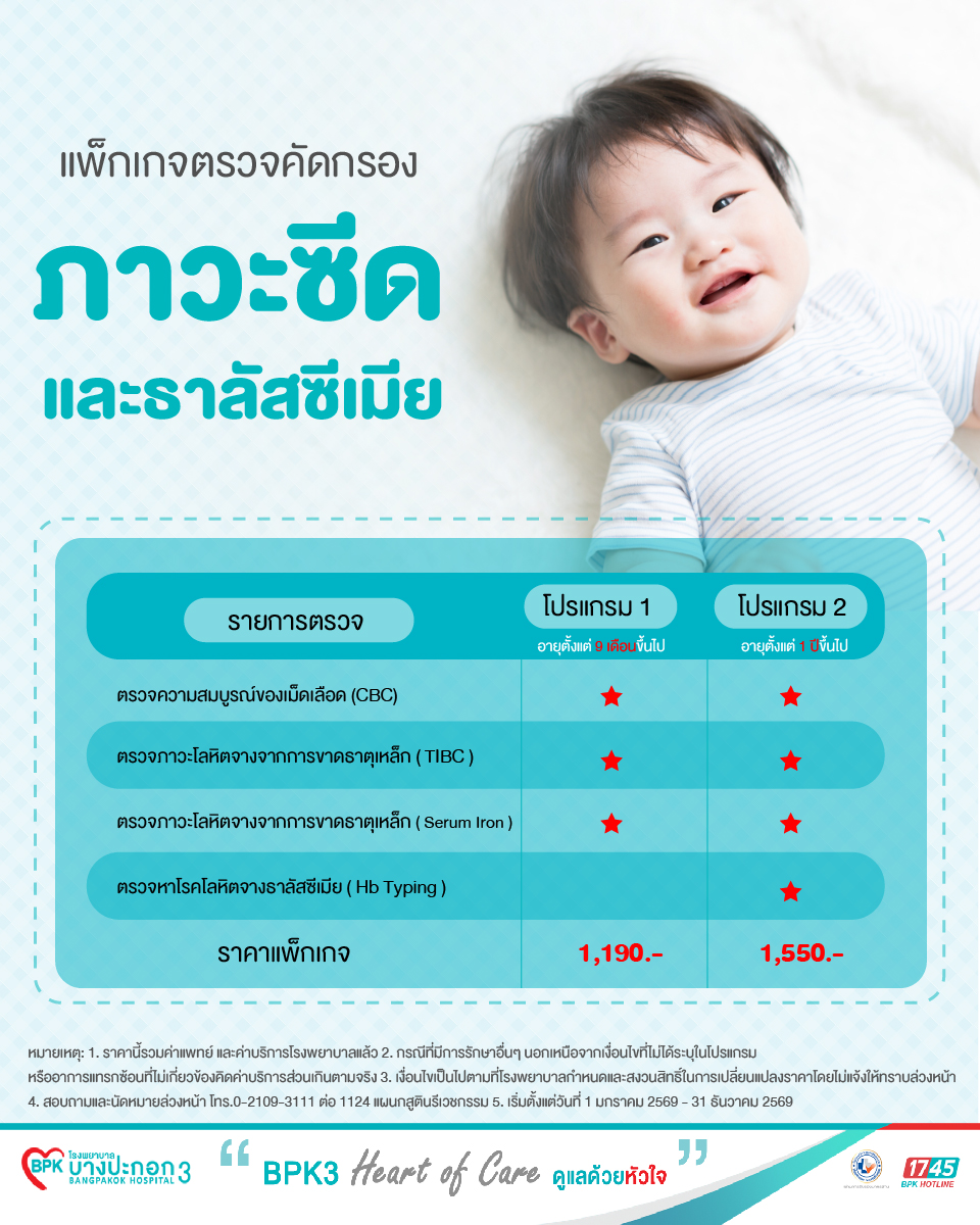 แพ็กเกจตรวจคัดกรองภาวะขาดธาตุเหล็ก+ธาลัสซีเมีย เหมาะสำหรับเด็กที่มีอายุตั้งแต่ 1 ปีขึ้นไป ราคา 1,550 บาท