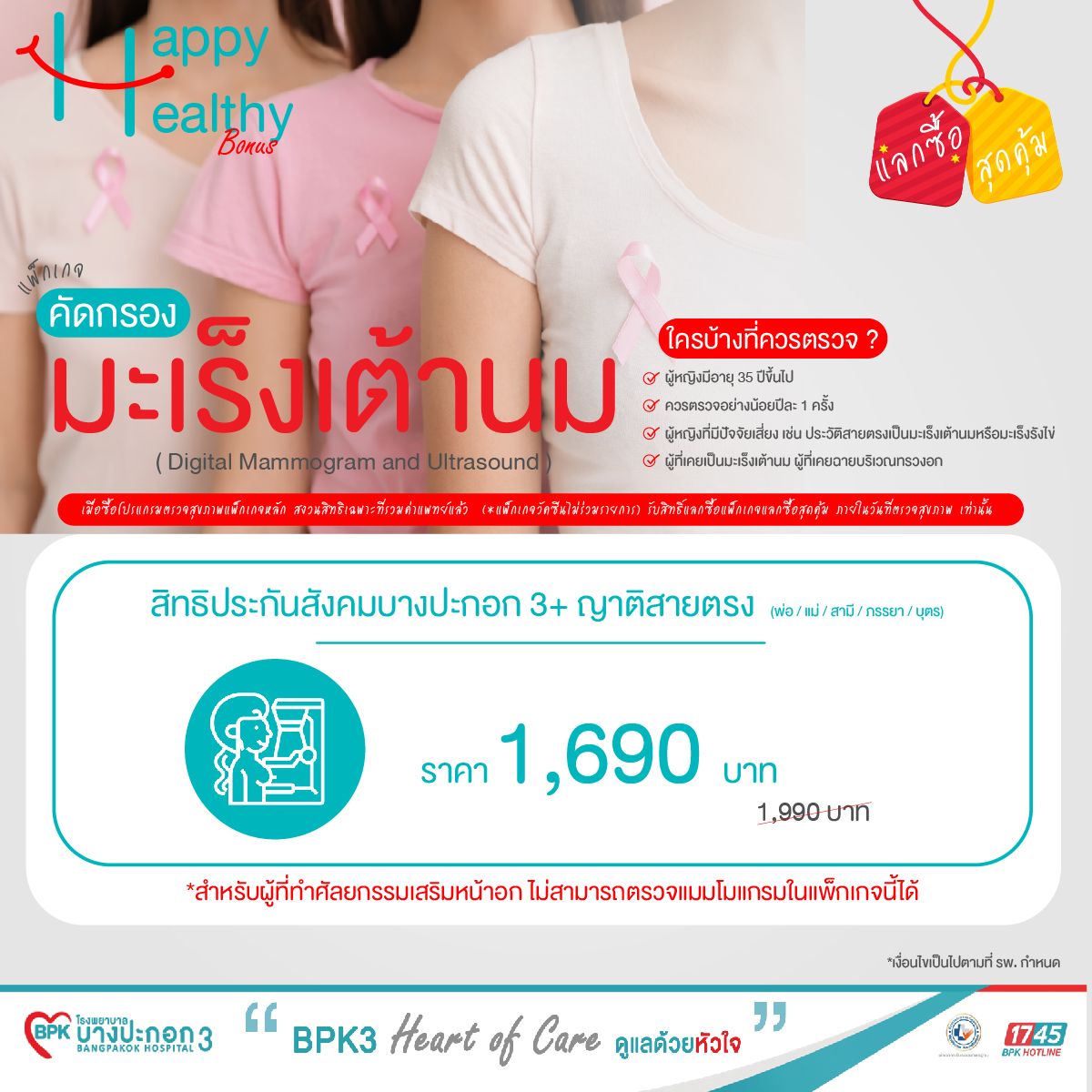 แลกซื้อ สุดคุ้ม ตรวจตัดกรองมะเร็งเต้านม (สิทธิประกันสังคมบางปะกอก3)
