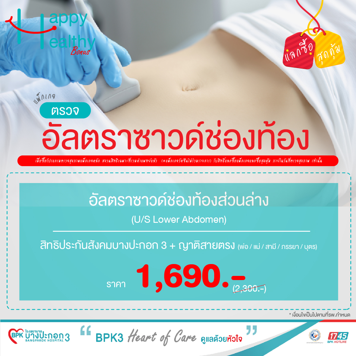 แลกซื้อ สุดคุ้ม ตรวจอัลตราซาวด์ช่องท้องส่วนล่าง (สิทธิประกันสังคม)