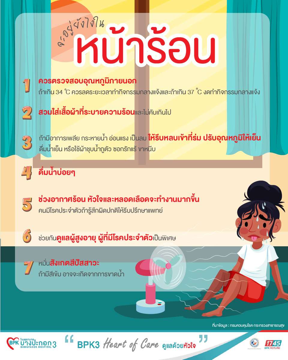 5.ช่วงอากาศร้อน หัวใจและหลอดเลือดจะทำงานมากขึ้น คนมีโรคประจำตัวถ้ารู้สึกผิดปกติให้รีบปรึกษาแพทย์