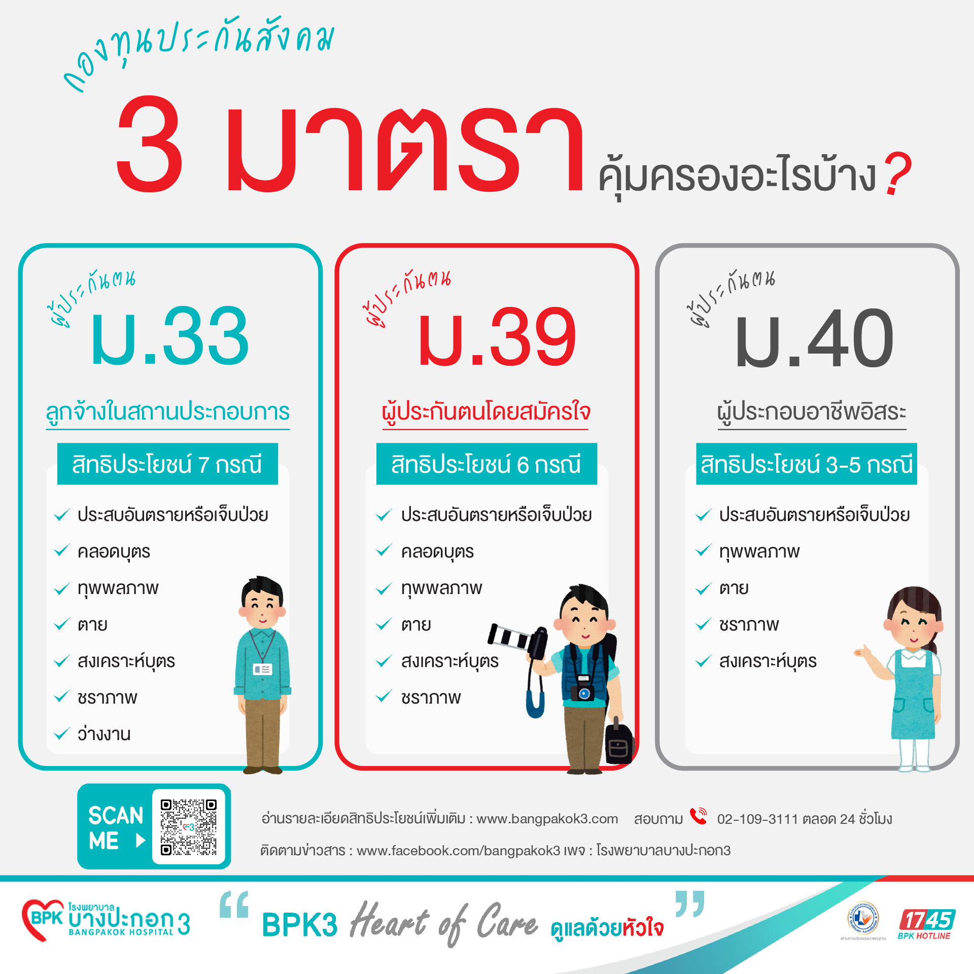 กองทุนประกันสังคม 3 มาตรา 33, 39, 40 คุ้มครองอะไรบ้าง?