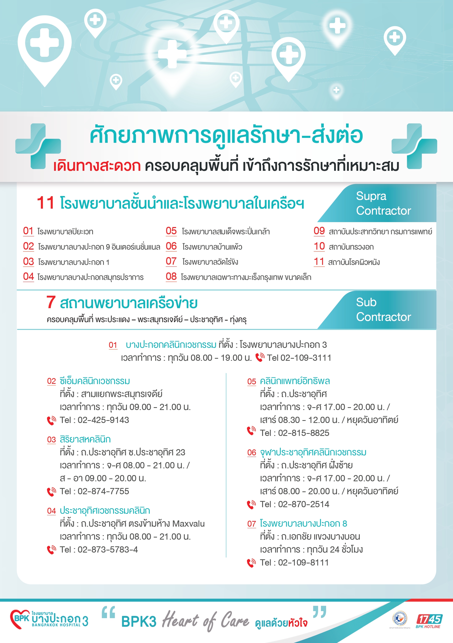 ครอบคลุมพื้นที่ พระประแดง – พระสมุทรเจดีย์ – ประชาอุทิศ - ทุ่งครุ *ใช้สิทธิประกันสังคม เข้ารับบริการ ฟรี ไม่ต้องสำรองจ่าย