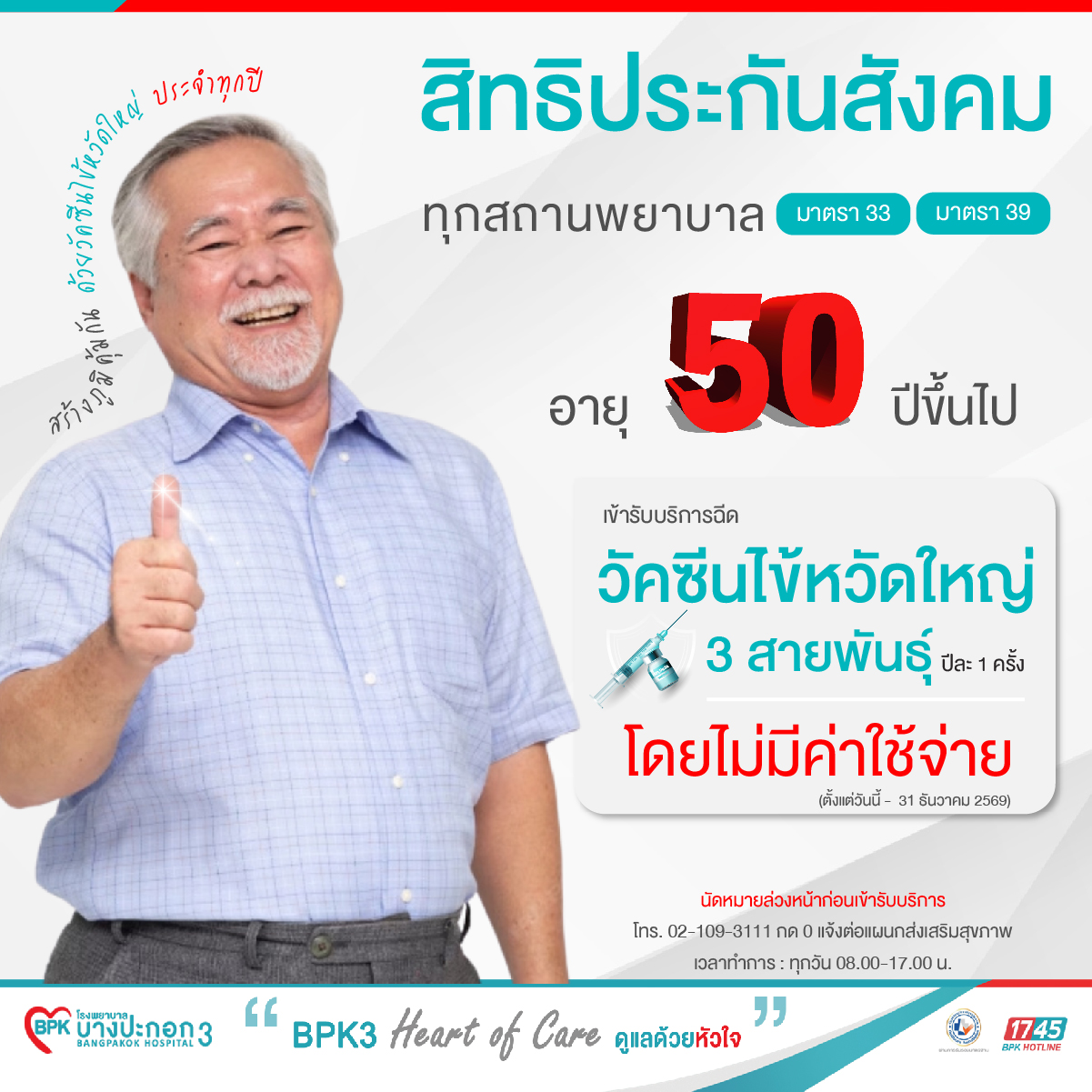 'สำหรับผู้ที่มีอายุ 50 ปีขึ้นไป (ม.33,ม.39) ทุกสถานพยาบาล