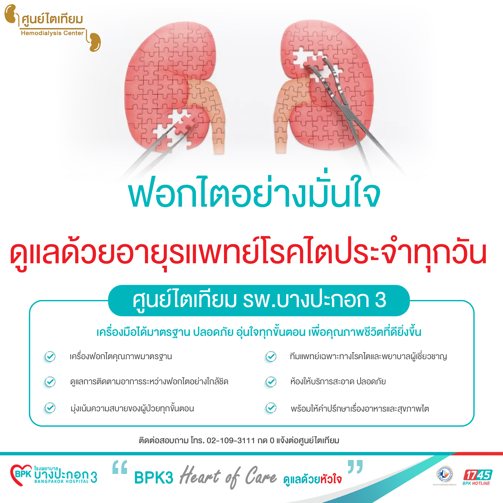 พร้อมดูแลผู้ป่วยฟอกไตด้วยทีมแพทย์เฉพาะทางและพยาบาลผู้เชี่ยวชาญ