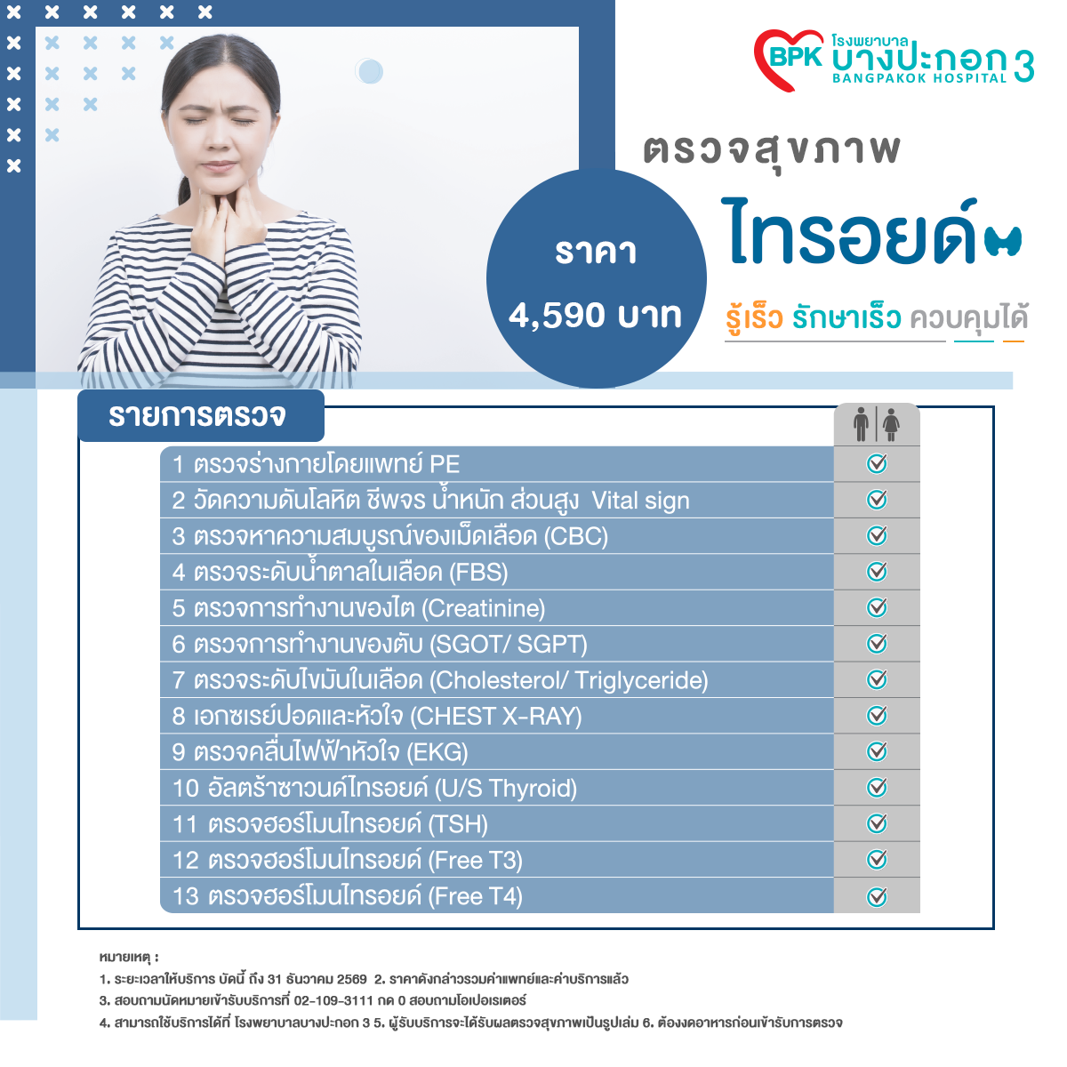 รายการตรวจสุขภาพไทรอยด์ในราคา 4,590 บาท