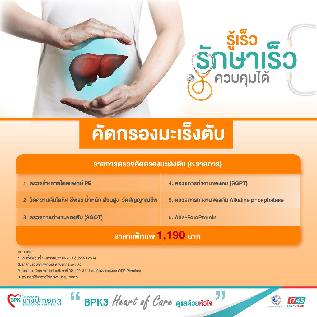 แพ็กเกจคัดกรองมะเร็งตับ ราคา 1,190 บาท