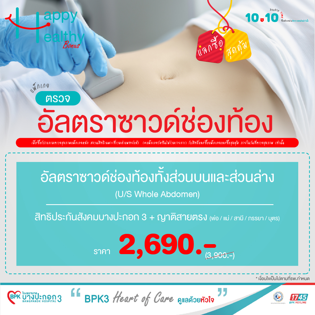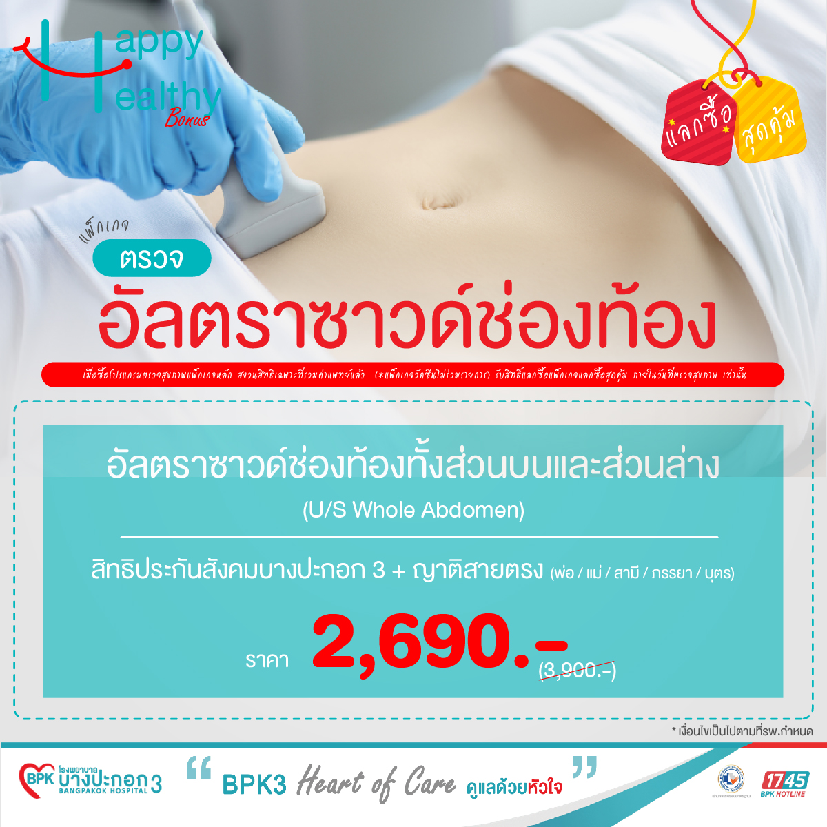 แลกซื้อ สุดคุ้ม ตรวจอัลตราซาวด์ช่องท้องทั้งส่วนบนและส่วนล่าง (สิทธิประกันสังคม)