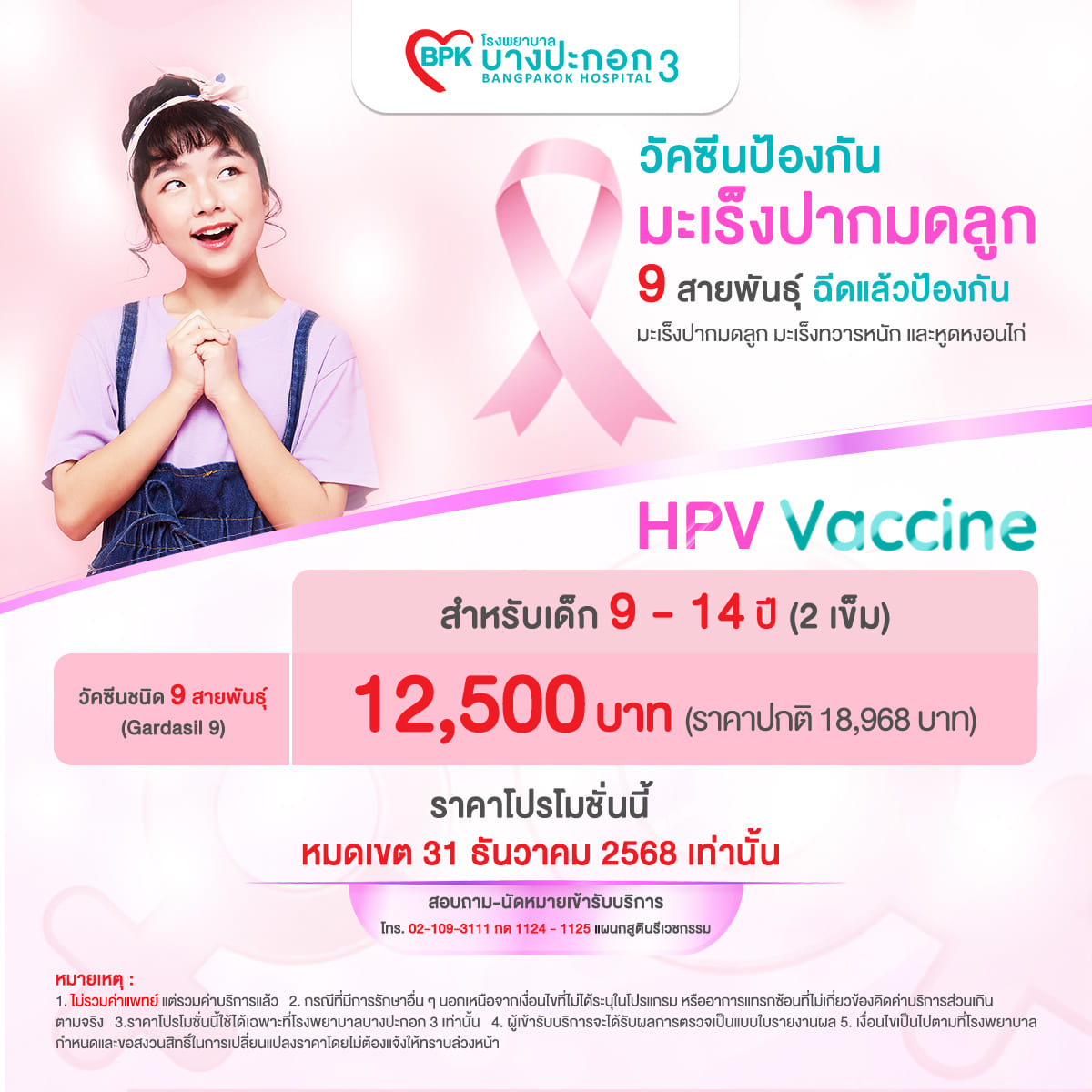 - เงื่อนไขเป็นไปตามที่โรงพยาบาลกำหนดและขอสงวนสิทธิ์ในการเปลี่ยนแปลงราคาโดยไม่ต้องแจ้งให้ทราบล่วงหน้า