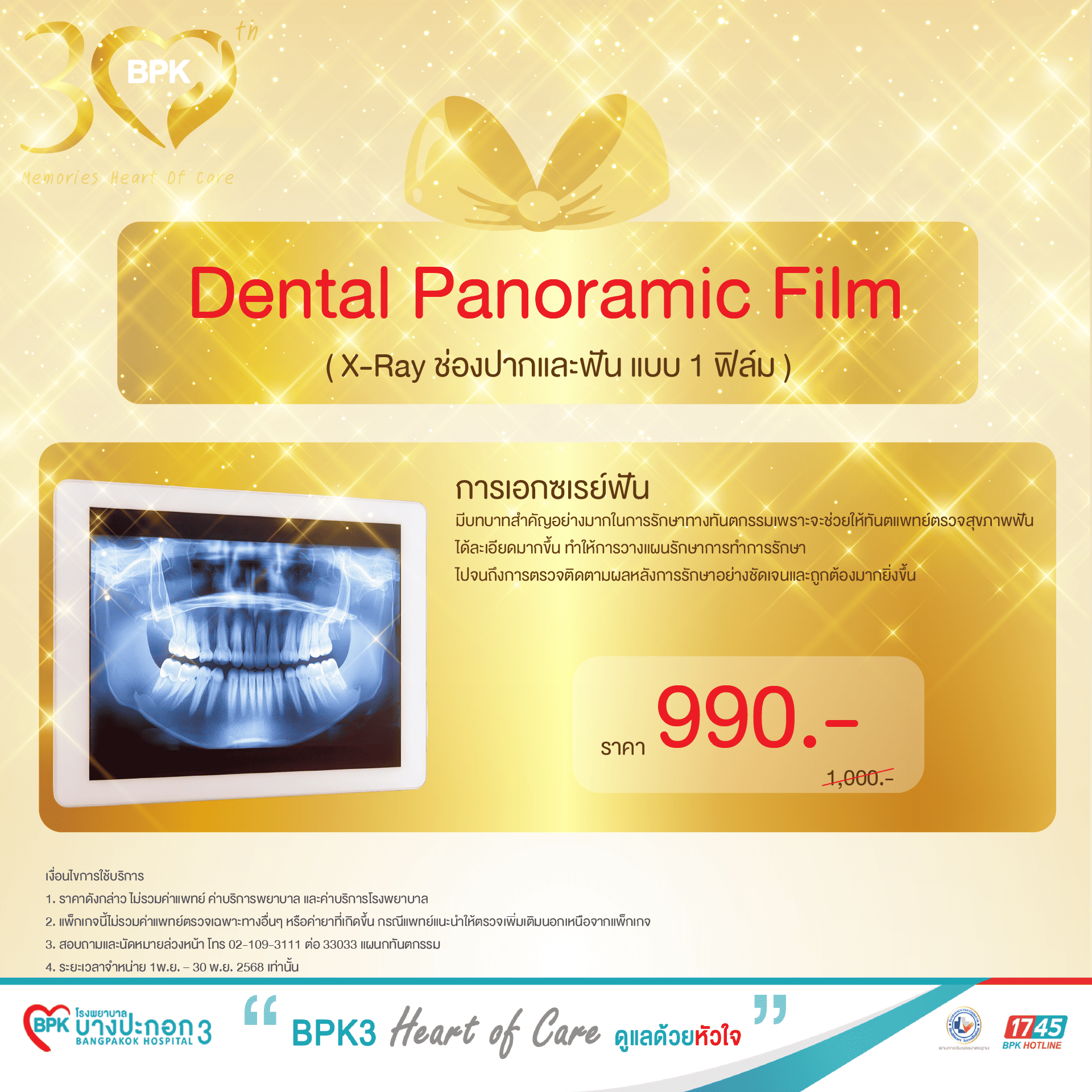 - 3. สอบถามและนัดหมายล่วงหน้า โทร 02-109-3111 ต่อ 33033 แผนกทันตกรรม
