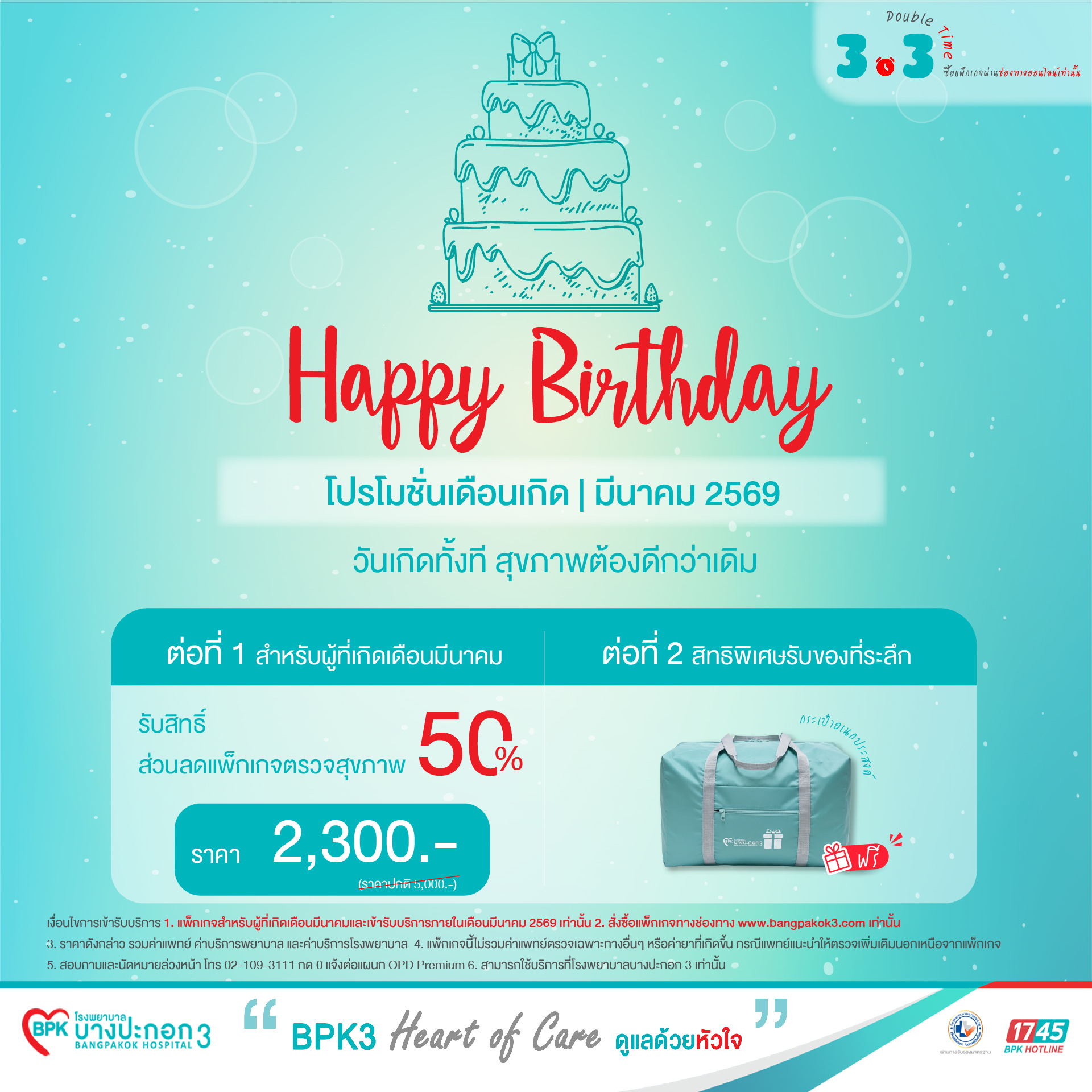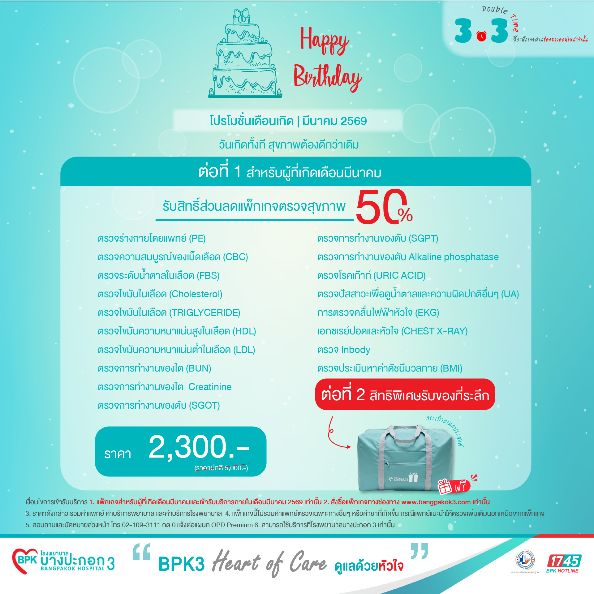 - *โปรโมชัน สำหรับผู้ที่เกิดเดือน มีนาคม ที่ซื้อแพ็กเกจ และตรวจสุขภาพเดือนนี้เท่านั้น
